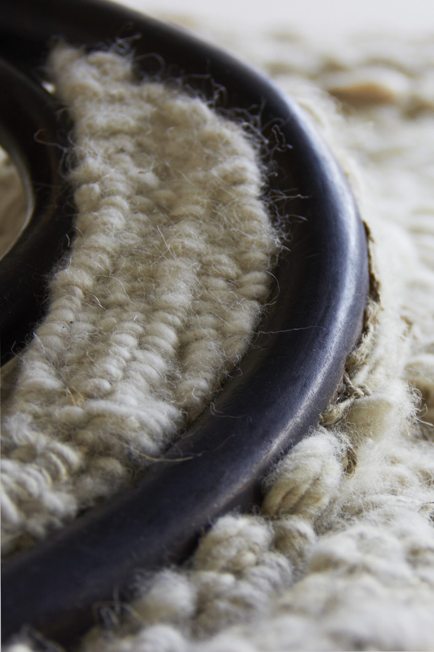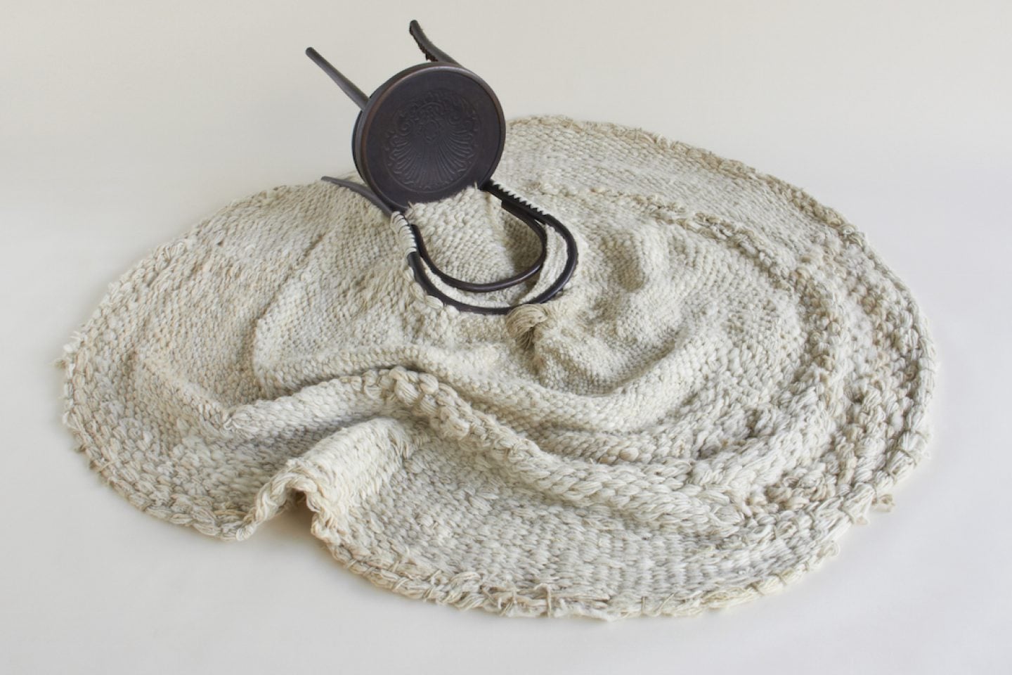 “[The] chairs are eaten, dominated and captured by the weaving” Employing tools not traditionally associated with weaving, Kang repurposed natural raw materials to create a new warped weave, with which she enveloped chairs, which become “consumed by the weave in their construction, as a way of commenting on the relationship between reality, representation and illusion.“ A statement by the artists explains, “[The] chairs are eaten, dominated and captured by the weaving, providing an opportunity to experience objects differently, in a textile form.”