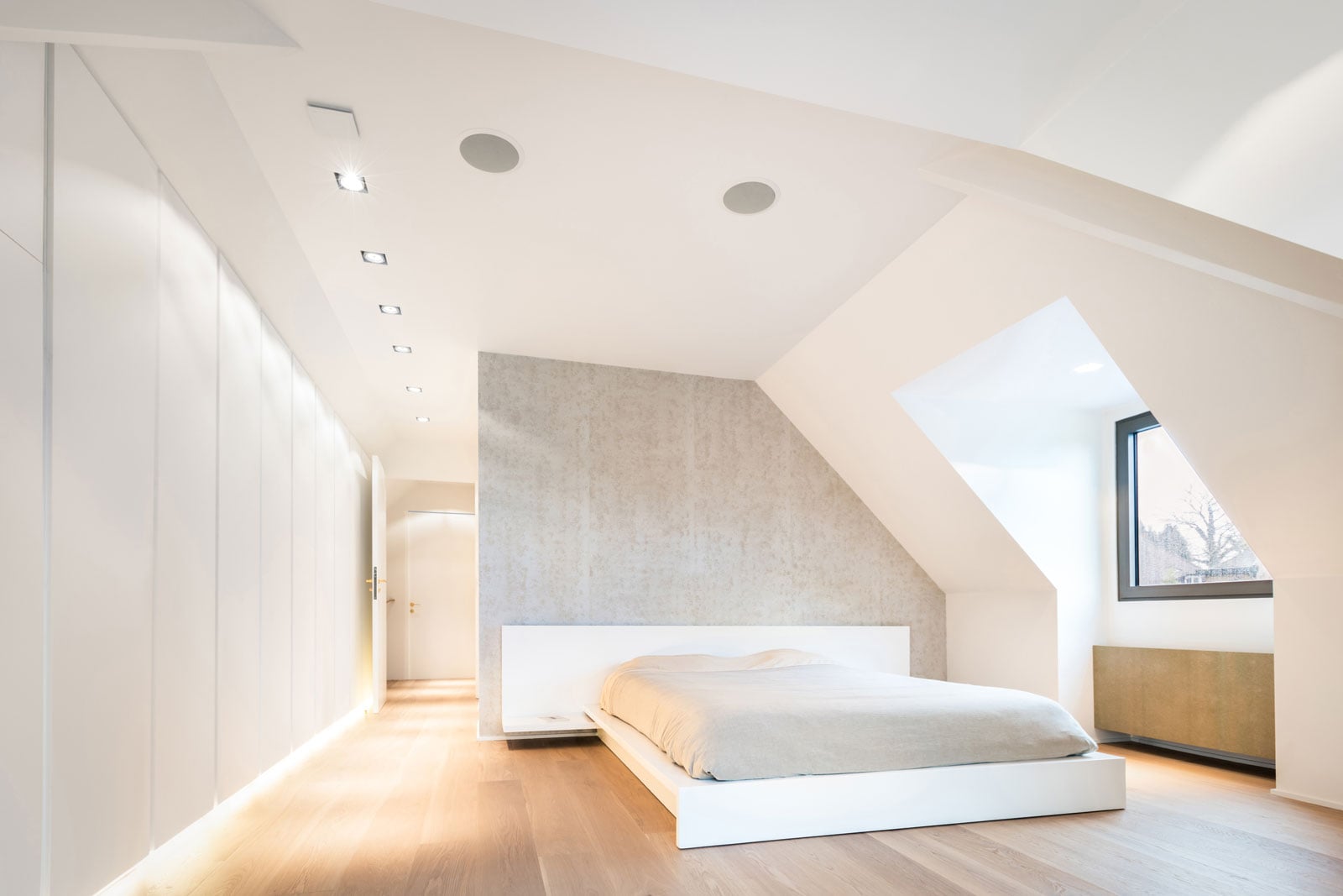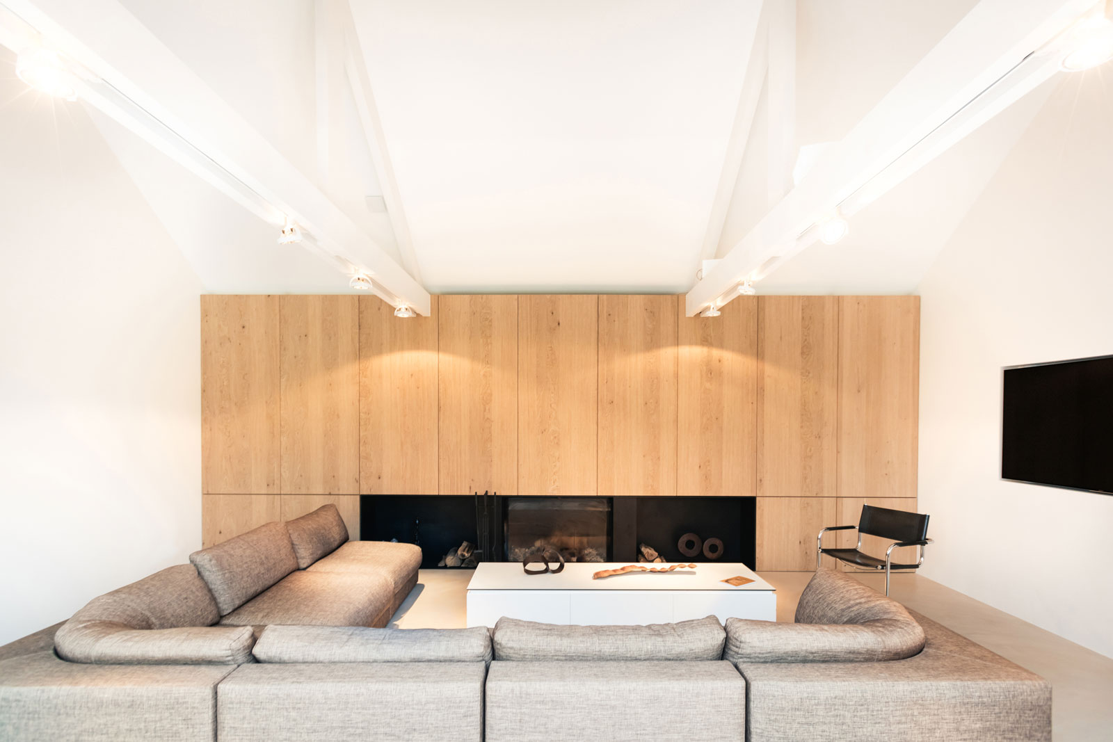 The commission consisted of a complete housing renovation. With respect for the conventional exterior, the intention was to create an inside space that would bring quiet and generosity. The clients’ request was to build a dwelling that would be contemporary, minimalist and modest, similar to their previous loft, while including a certain warmth, raw materials and luminosity. In this project, the relationship with the outside and the existing landscape drove the design for the inside. Materials such as wood, stone, Washi paper and brass were chosen for the space as a reflection of the outside, serving the interior by giving a warm and natural feel. In partnership with the client, Karine Szekeres and her team tried to get rid of all that was unnecessary, focusing on intrinsic and long-lasting comfortable architecture. This mindset did not interfere with the meticulous and fastidious care we attributed to details. The hidden and overlooked details are what make this house subtle, intimate and unique.