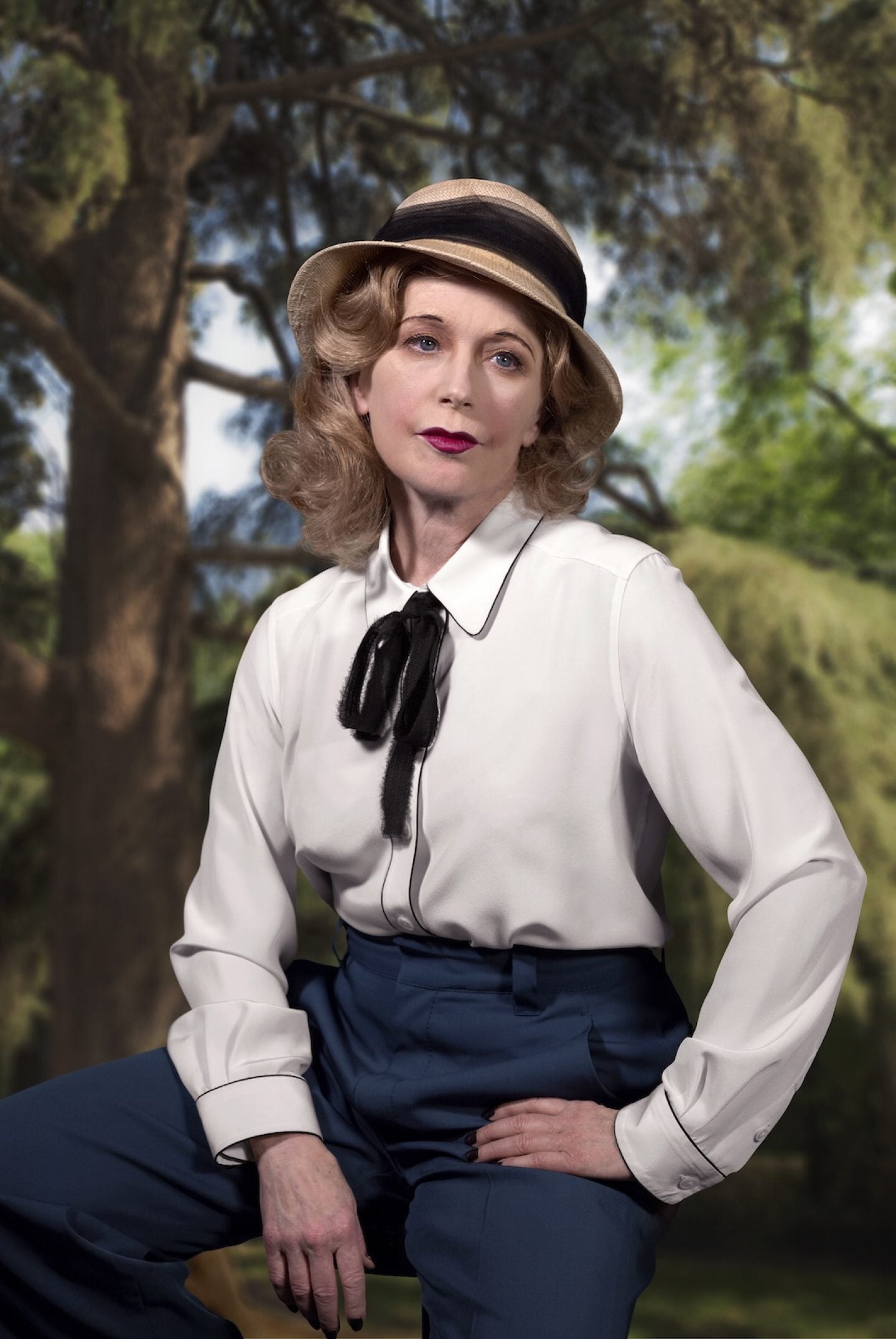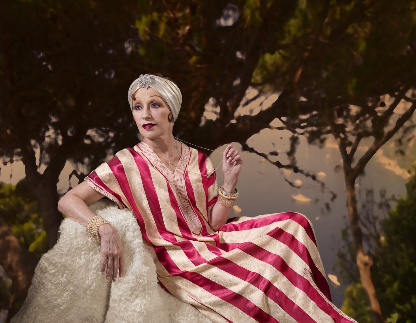 The large-scale color portraits show the artist presenting herself as various Hollywood divas from the golden era of 1920s cinema in the United States. Sherman, best known for her critical parodies of gender roles, sexuality and identity, now takes an ironic glance behind the sparkling facade of Hollywood goddesses.