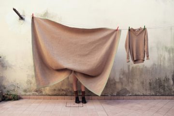 The series ‘Bucato’ by Sandra Lazzarini is a collection of self-portraits during the days of laundry. Shirts, blankets and pants become an ideal place to hide and these hanging clothes merge with a slim body that seems to look for a sensual touch. All this represents the perfect frame of a normal day.