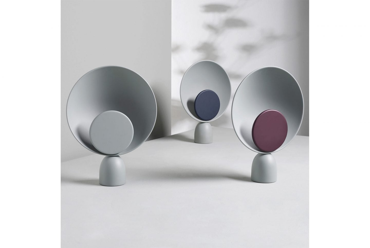 At Copenhagen’s PLEASE WAIT to be SEATED, this openness of form continued in the lighting design of Mette Schelde. The multi-colored discs of ‘Planet Lamp’ are magnetized — allowing movement and a multitude of possible shadows to be cast via the indirect halogen light that glows from the main steel bar. With a similar playful bend, and utilizing the color-scheme of all PLEASE WAIT to be SEATED products, the LED bulb in Mette’s ‘Blooper’ Lamp is controlled by rotating the colored disc at its front.