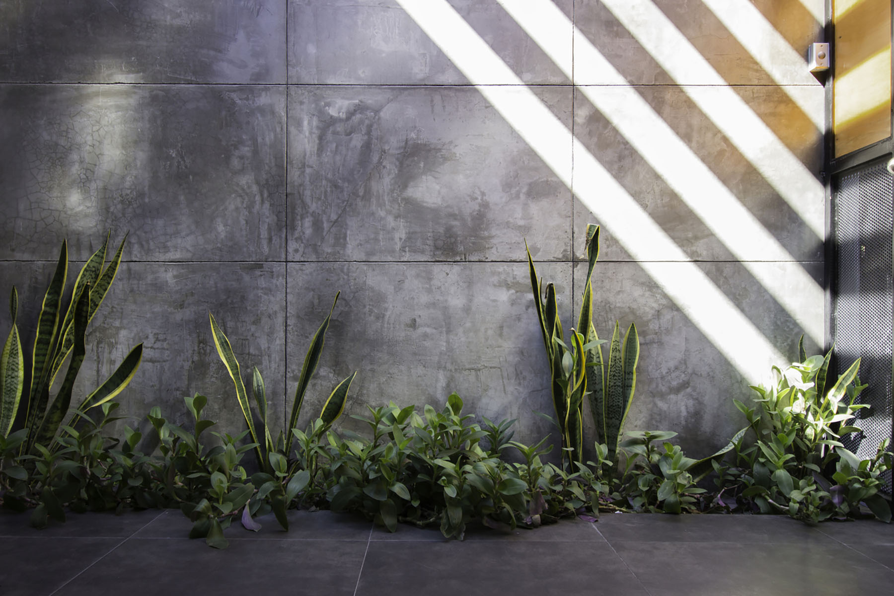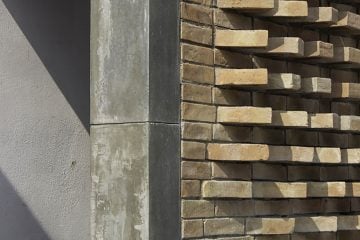 The interior of ‘Papagayo House’ was originally very dark and closed, so the main task for the architects was to introduce more light and ventilation to the space. Situated in one of the warmest cities in Mexico, the need for a more open space was a crucial design target. The courtyard also acts as a natural source of light and air, giving the home a more open and spacious feel. Working with structural limitations, Valenzuela and Ledesma used parametric design techniques to work out how to make the best of the awkward floor plan. The biggest challenge the architects faced was that the busiest areas in the home were the least illuminated. To overcome this, they introduced a courtyard filled with pebbles and plants in the middle of the house connecting the bedrooms, social areas and study. The courtyard also acts as a natural source of light and air, giving the home a more open and spacious feel. One of the most striking features of ‘Papagayo House’ is its contrasting brick and whitewashed exterior. The architects used local artisanal milpa brick to construct a dogtooth patterned brick wall on one side while a smooth white wall with letterbox shaped windows runs along the opposite side.