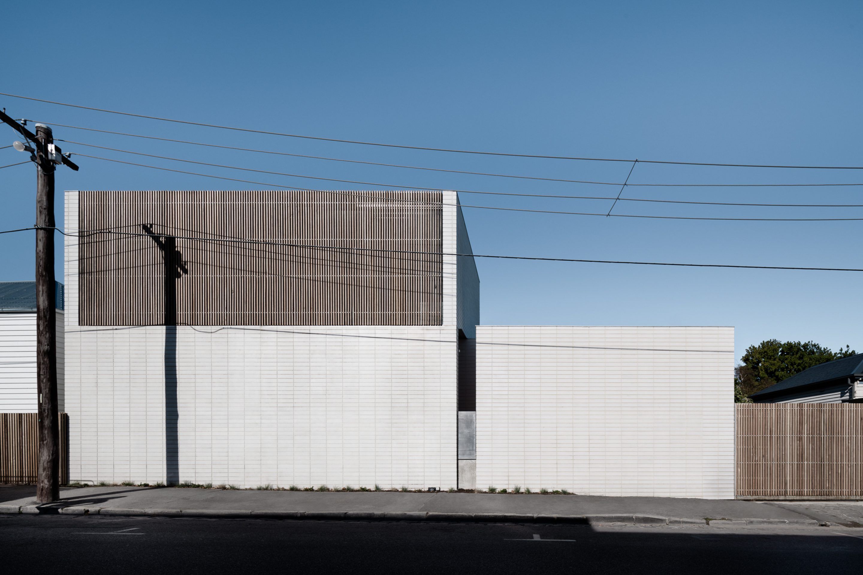 The project incorporates two separate but interrelating frameworks; a stark difference in architectural typology of which is evident from the side of the property, illustrating the clear division between the original and new structure. “The first is an existing heritage frontage, reestablished as a clean white silhouette that maintains a street presence in alignment with the heritage overlay of the rest of Edsall Street,” explains the firm to IGNANT. “The second enveloping shell is a new build, comprising steel, masonry work, light and air. This addition forms an architectural casing loosely defining the interior volume,” they say. The affixed new volume exists on a sloping site, which creates a vertical dislocation, segmenting rooms and volumes from one another. “The ‘Edsall Street’ project is expressed as a series of masonry walls that open outwards towards garden spaces of crushed limestone and native flora,” they continue. White concrete blocks and timber surfaces extend past one another and continue outwards to the garden, creating an interplay of light, texture, and tonality. Inside, a muted color palette with pared-back furnishings creates a sophisticated atmosphere; its rooms make expert use of natural light, space, and materiality.
